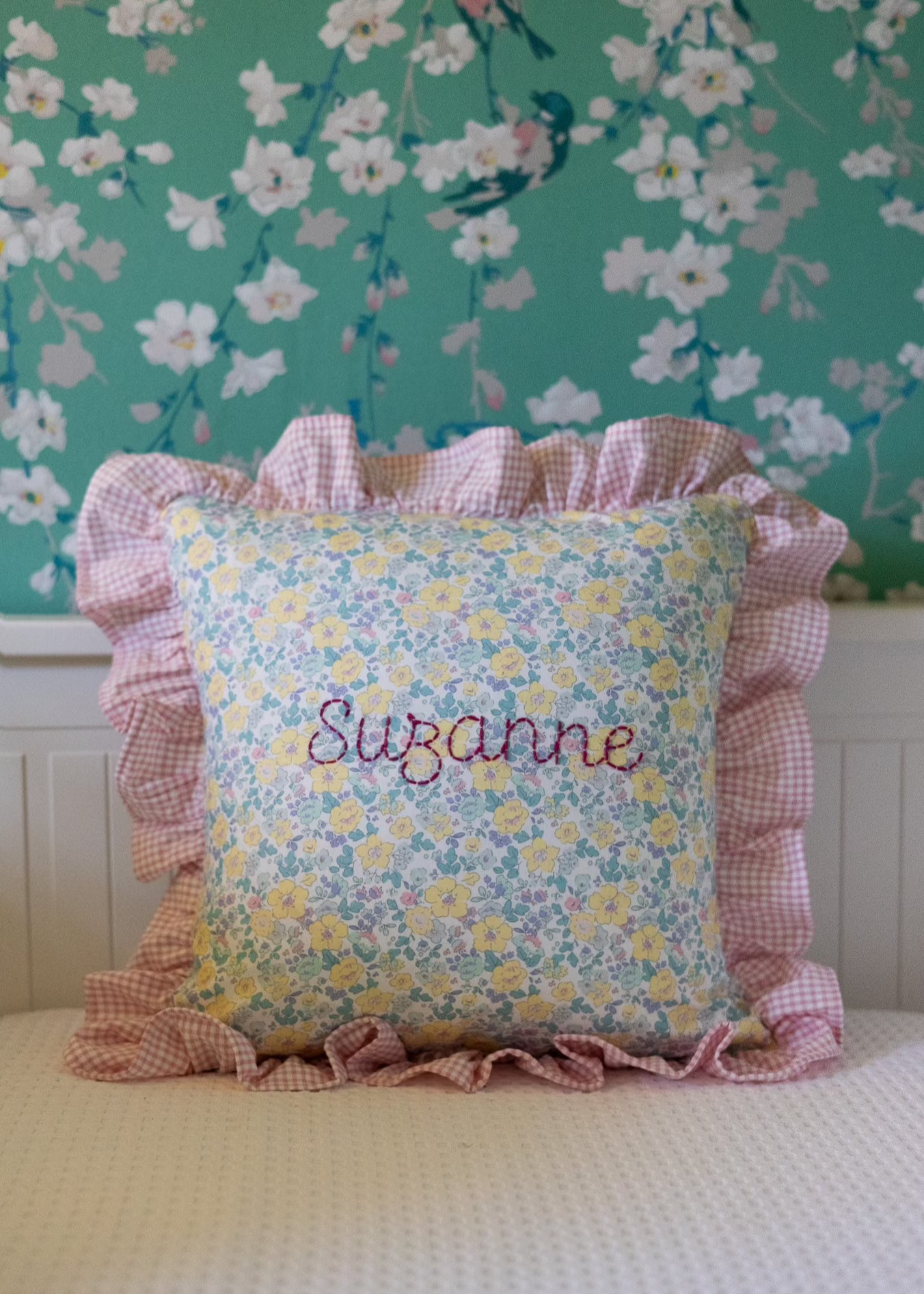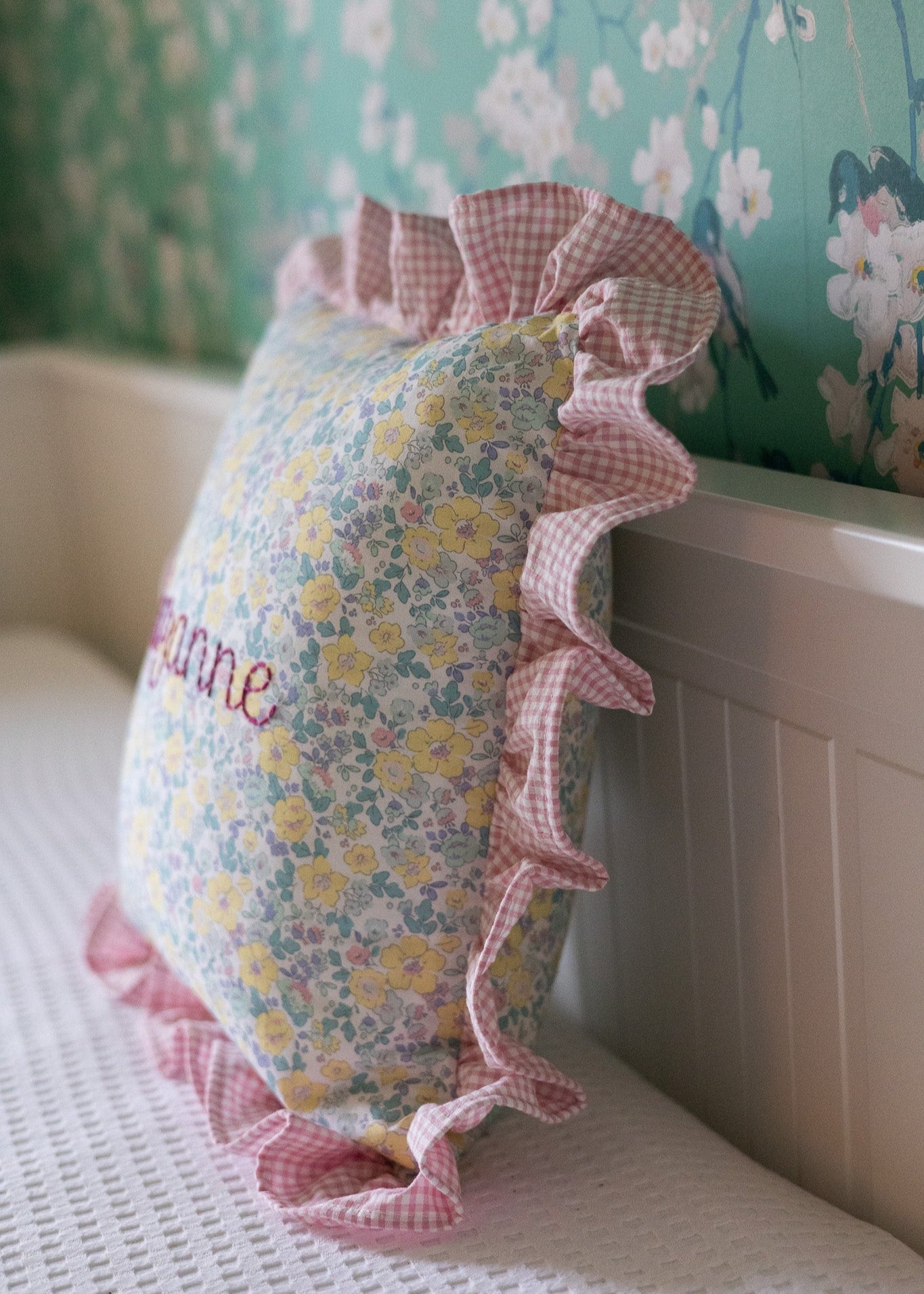 The cushion cover adds a touch of softness and elegance to any room's decor. Personalise it with a name or initials in your favorite color!